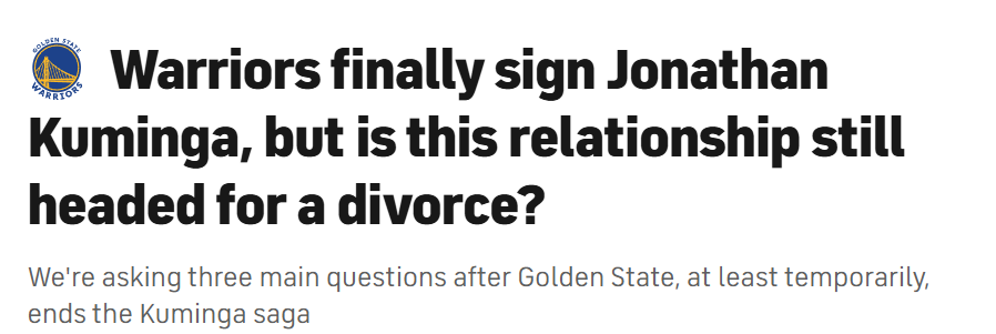 总而言之,这份合同的结构本身就为“2月交易截止日前随时交易库明加”保留了可能性。这让人联想到2019年夏天:勇士队在杜兰特先签后换交易中得到拉塞尔,但他们从未真心想留他,拉塞尔也与勇士体系格格不入。无论公开说辞如何,“交易他”始终是球队的真实计划。如今对库明加,勇士大概率仍在执行同样的剧本,续约只是为他们争取了更多时间。