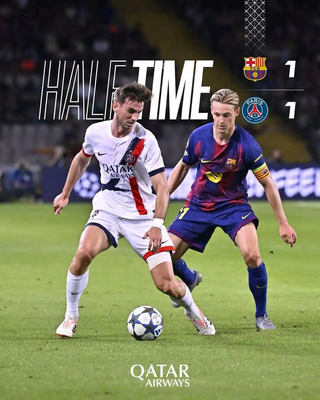 上半场:巴萨先声夺人,大巴黎迅速扳平