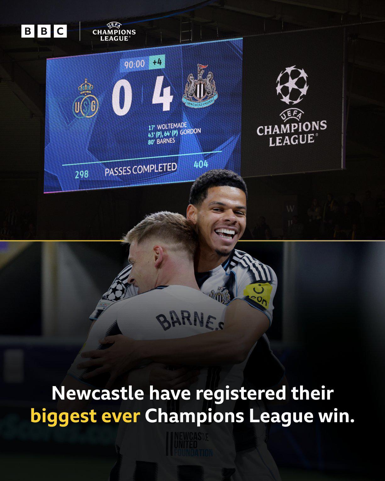 北京时间10月2日,在刚刚结束的欧冠联赛第二轮焦点战中,英超劲旅纽卡斯尔联远征比利时,以4-0的绝对优势横扫圣吉罗斯,这场胜利不仅为球队带来宝贵三分,更创造了队史欧冠赛事最大比分差距纪录。