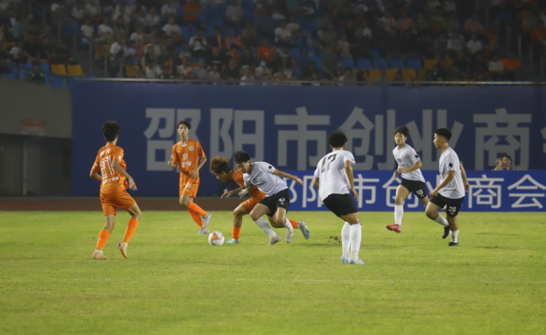 10月1日晚,邵阳市体育中心灯火璀璨,熟悉的乡音在秋夜中交织回荡。备受瞩目的“湘超”邵阳队与大湾区湖南人队足球友谊赛在此激情上演,这场被球迷称为“邵阳德比”的较量,从开场前就洋溢着浓浓的家乡情谊。