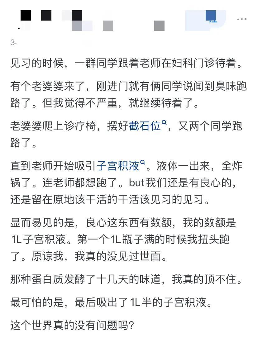 还有网友分享了更沉重的经历:“女朋友的奶奶胸口有肿瘤,都烂了,就是不愿意去医院。每次她去看望的时候都要戴N95口罩,但还是能闻到味儿。”