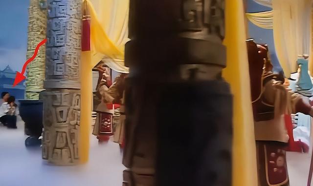 还有就是天庭这个镜头,当玉皇大帝为孙悟空一事商讨对策时,柱子后方竟然蹲着两个摄影师。