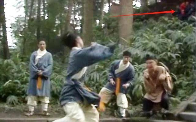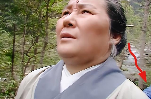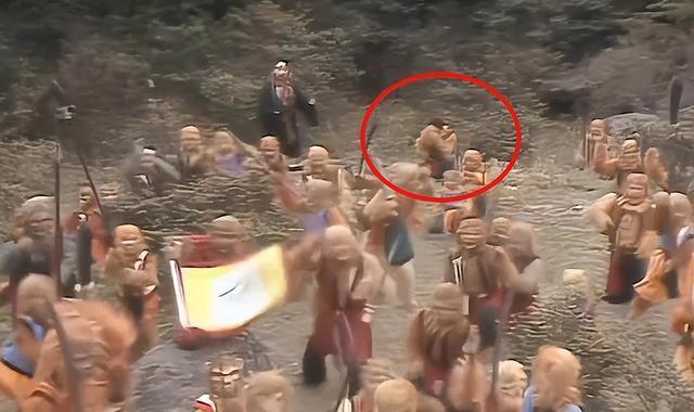不仅如此,在“三打白骨精”这一集中,白骨精化身老婆婆被孙悟空一棍子打死后,注意看身后有一个穿蓝色上衣的现代人。