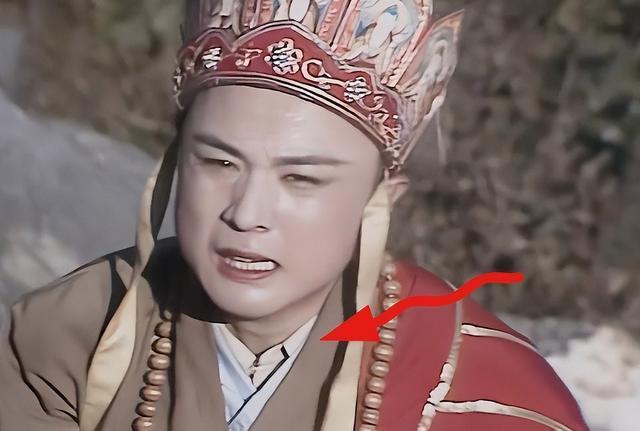 在“三借芭蕉扇”这一集中,土地公公现身为孙悟空指点迷途,然而镜头中的他伸起大拇指时,却意外暴露了外套内的秋衣。