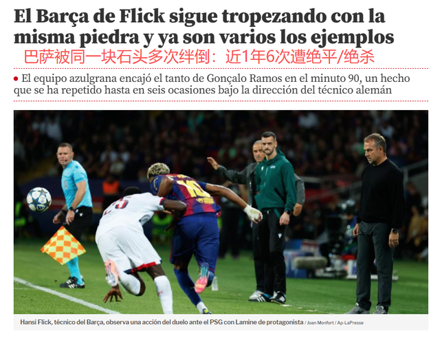该媒体用"被同一块石头绊倒6次"形容巴萨的困境。数据显示,6次致命失误中有2次发生在欧冠赛场,且多出现在与顶级强队的对话中。分析指出,弗里克麾下虽拥有莱万、佩德里等球星,但缺乏普约尔式的精神领袖。关键时刻的松懈,往往导致全局崩盘——正如对阵国米时,从3-2领先到被绝平、绝杀的戏剧性转折。