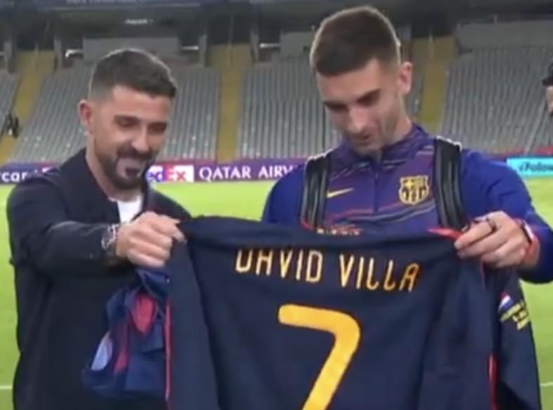 北京时间10月2日,在欧冠赛场对阵巴黎圣日耳曼的激烈比赛结束后,巴萨球员费兰-托雷斯迎来了一场外的重要时刻。他收到了一个极具纪念意义的礼物——由西班牙传奇射手比利亚亲手赠送的西班牙2010年世界杯决赛球衣。