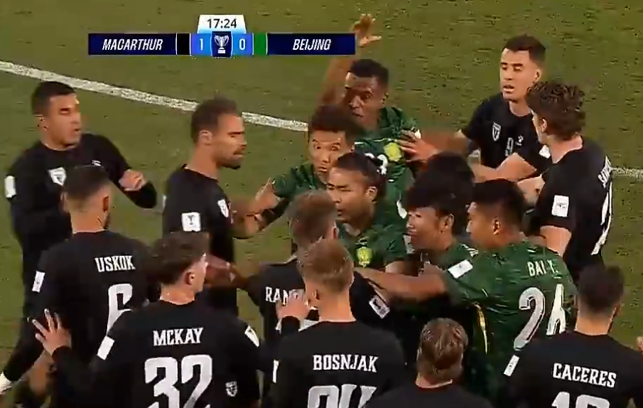 在2025-26赛季亚冠二级联赛小组赛第二轮焦点战中,北京国安客场挑战澳大利亚劲旅麦克阿瑟FC时爆发大规模冲突。比赛第17分钟,国安中场池忠国因报复性飞铲对手引发双方14名球员混战,当值主裁仅出示口头警告未出示黄牌,这一事件成为赛后热议焦点。