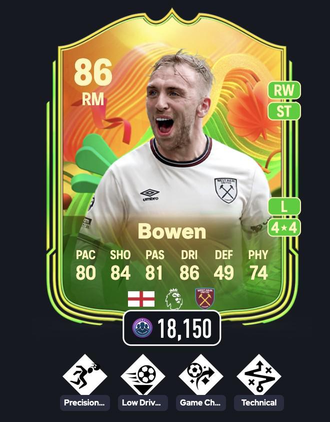 在本次更新中,鲍恩SBC成为了玩家们关注的焦点。这张SBC卡拥有4花4逆的出色属性,同时还配备了银精准头球、低射、破局者、游龙等实用技能。对于想要提升阵容实力的玩家来说,这无疑是一个不可多得的选择。而其造价约为1.8万金币,也在大多数玩家的承受范围之内。