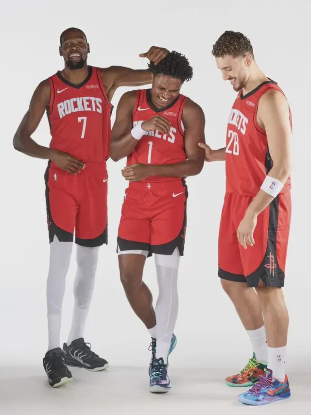 范乔丹因伤赛季报销,但休斯顿火箭队的阵容深度依然不容小觑。申京、阿门与杜兰特组成的年轻三巨头,正成为球队复兴的核心力量。在定妆照拍摄现场,杜兰特主动将阿门推至C位,这一举动不仅彰显了对年轻球员的认可,更暗示着火箭战术体系的重心转移。杜兰特在采访中明确表示将与火箭续约,其留队决心与球队对伊森的优先续约计划形成呼应,展现出管理层对未来阵容的长远规划。