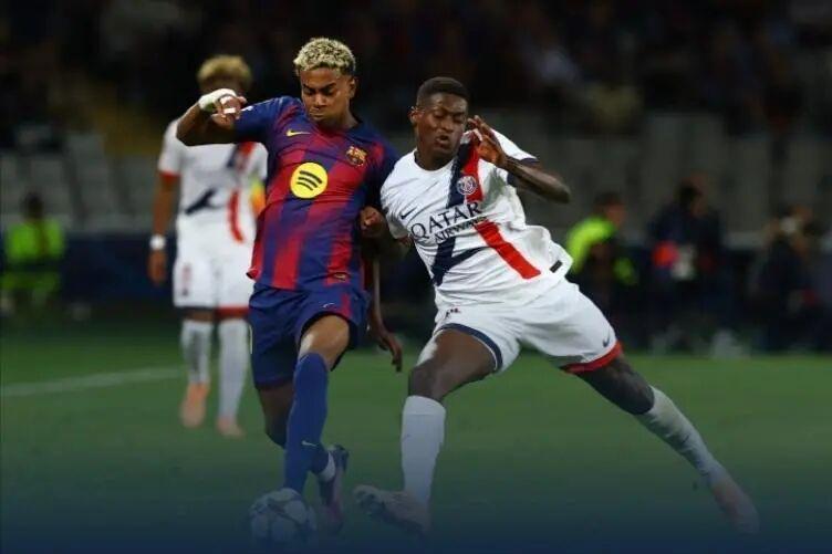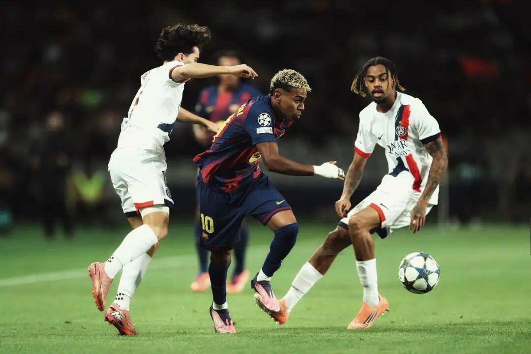 面对落后局面,伤兵满营的巴黎(登贝莱、克瓦拉茨赫利亚等主力缺阵)在恩里克指挥下迅速调整。佩德里下场后,巴萨中场控制力下降,巴黎抓住机会: