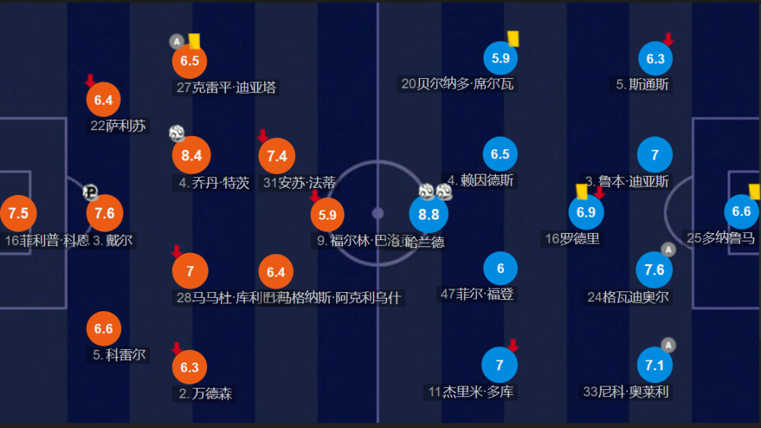 当然,贝尔纳多-席尔瓦的表现也未能让球迷满意,他与尼科-冈萨雷斯分别被评为本队评分最低的两名球员。