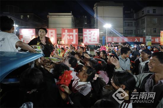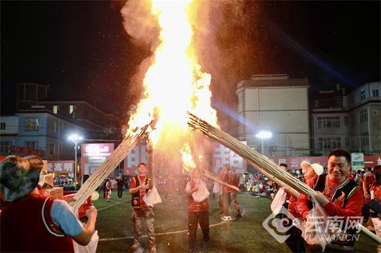 紧随其后,彝族火把队手持火炬踏歌而来,百米长的火龙蜿蜒穿过观众席,将非物质文化遗产的磅礴气势与现代体育的活力完美融合。本土产业巡游方阵中,百年历史的杨林肥酒展示酿造技艺,云英饼屋推出足球主题糕点,山脚社区的蜜薯方阵以“土里刨出的香甜”讲述乡村振兴故事,手工辣椒酱方阵则以热辣气息点燃全场热情。