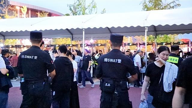 在安检口,公安民警配合安检人员,严格落实人员安检措施,杜绝危险物品进入赛场,为赛事安全把好第一道关。