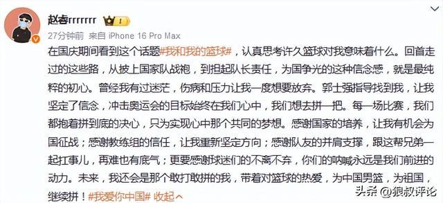 北京时间10月2日,正值国庆假期,中国男篮队长赵睿就“我和我的篮球”这一话题发表了深刻见解。