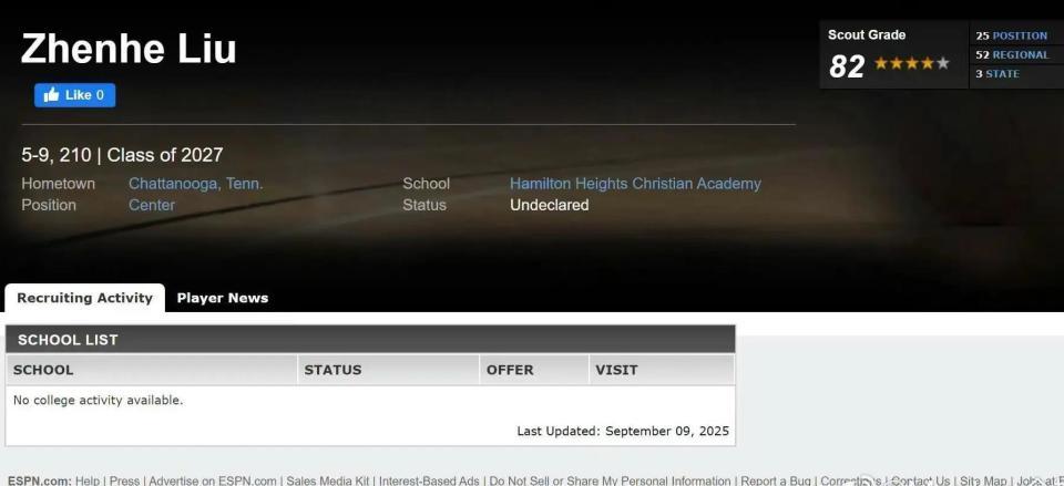 今年八月,刘朕赫迎来职业生涯重要节点,同时收到田纳西大学、密西西比大学、维拉诺瓦大学、佛罗里达州立大学四所NCAA名校的录取邀请。这一成绩单,印证了其在美国高中篮球界的认可度。