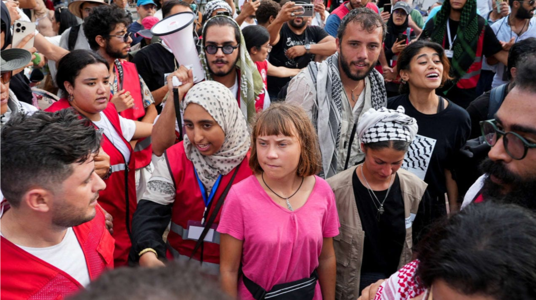 瑞典气候活动家格蕾塔·桑伯格的参与引发争议。她曾因参与6月破封锁行动被以色列驱逐,在观看10月7日大屠杀视频后悄然离开,9月初又高调现身苏木德船队。但因内部分歧,她在突尼斯停靠期间被悄悄移出领导层。