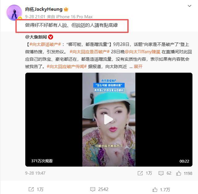 #向太回应向家破产传闻#