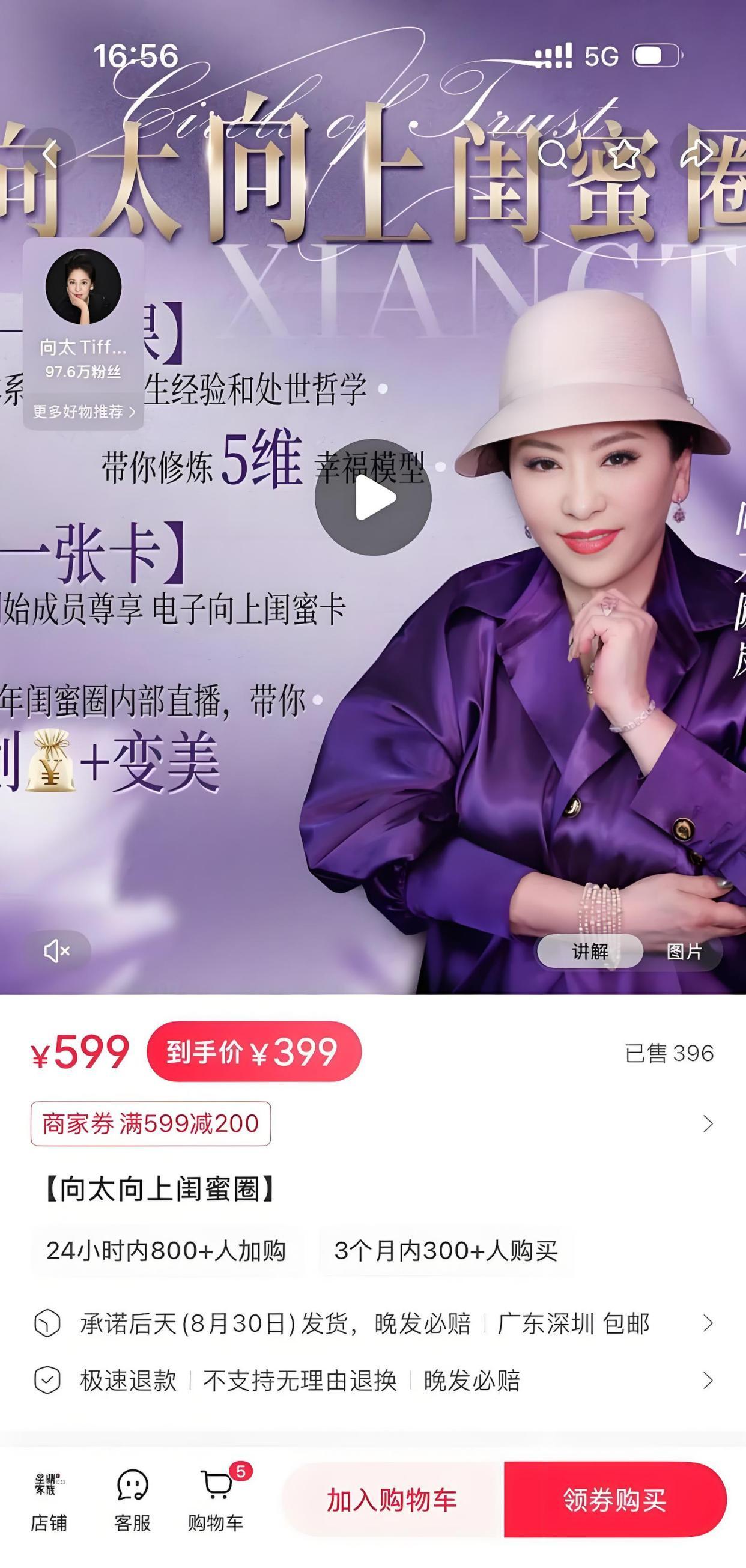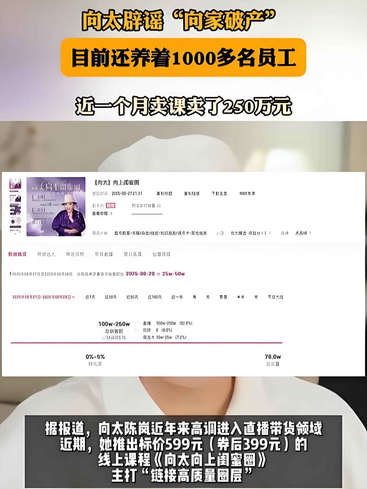 还推出了599元的线上课程《向太向上闺蜜圈》,卖出超7500份。