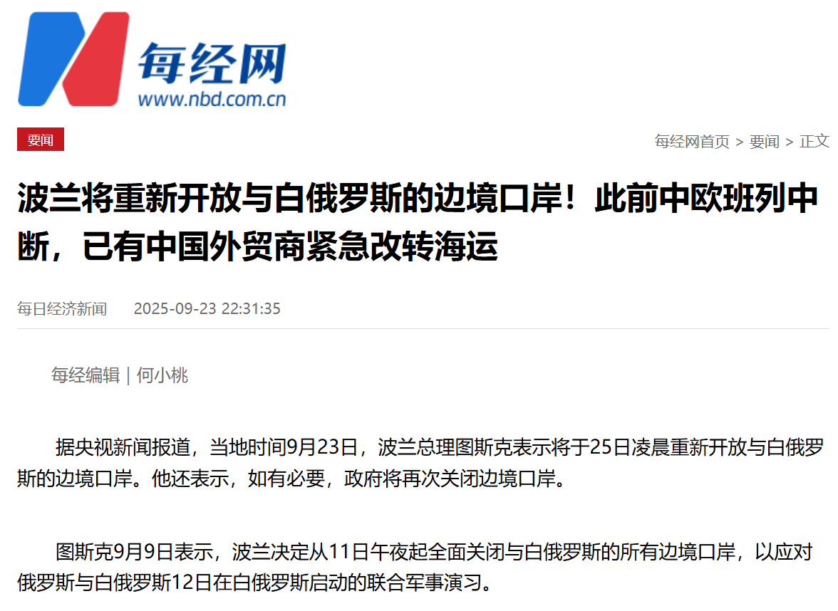 就在前不久,波兰曾因为关闭与白俄罗斯接壤的铁路口岸,导致中欧班列大规模堵塞。要知道,这条通道关系的不仅是中国的出口,更牵动整个欧洲的供应链。高达九成的货物都得经过波兰这个枢纽,一时间各国企业急得跳脚。