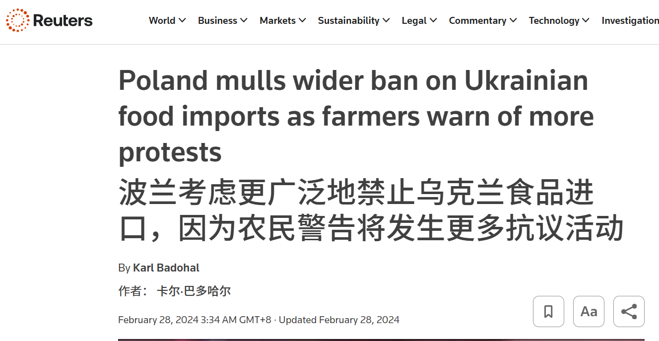 过去一年,乌克兰粮食大量流入波兰市场,压垮了波兰农民的生计,小麦价格暴跌,引发了大规模抗议。波兰政府不得不暂停乌克兰粮食进口,还一度冻结了部分对乌军事援助。那次事件让波兰政客们彻底明白:理想主义不能当饭吃,政治表忠心更不能拿选票换。
