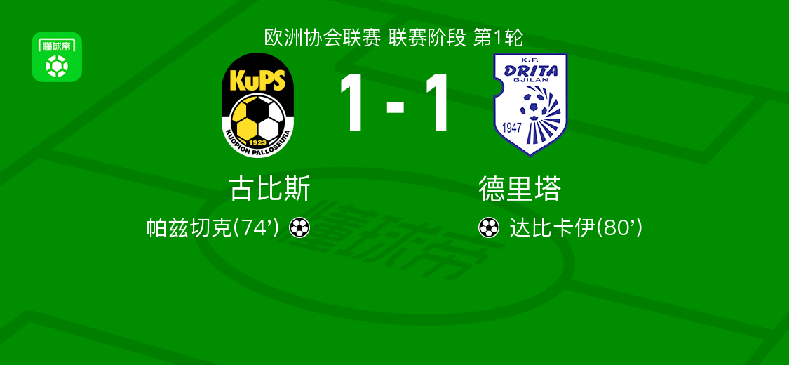 北京时间10月3日,欧洲协会联赛联赛阶段第1轮迎来一场焦点对决,芬兰球队古比斯与科索沃球队德里塔狭路相逢。经过90分钟的激烈角逐,双方最终以1比1的比分握手言和,各取一分。