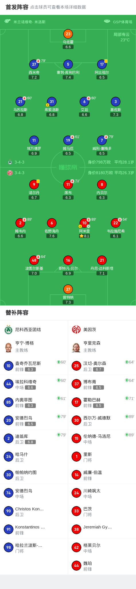 此后,尽管尼科西亚团结试图发起反击,但美因茨的防守固若金汤,没有给对手留下任何破门的机会。随着终场哨声的响起,全场比分定格在了尼科西亚团结 0-1 美因茨,美因茨凭借阿米里的点球制胜,成功拿下了这场关键战役。