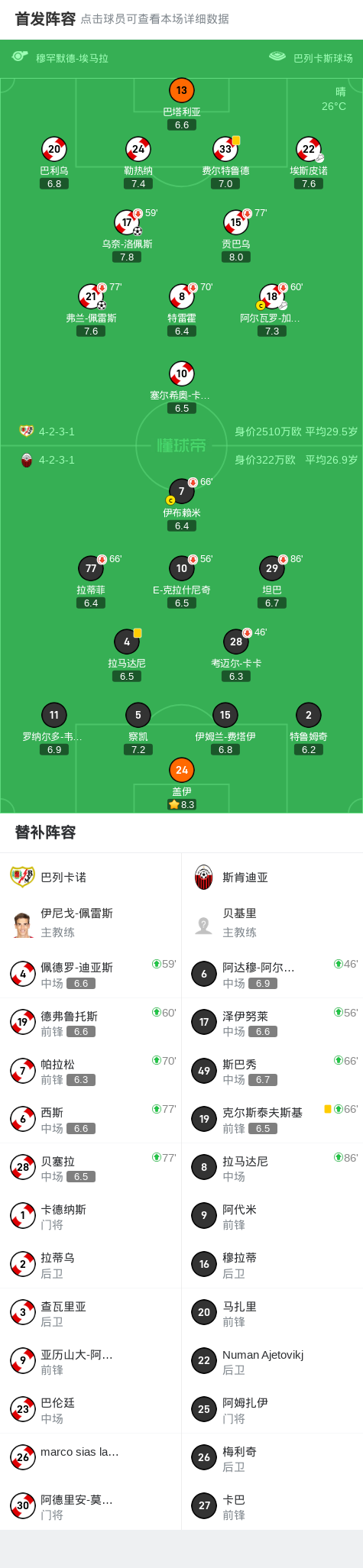 本场比赛,巴列卡诺主帅伊劳拉对阵容进行适度轮换,但替补球员表现毫不逊色。乌奈-洛佩斯与弗兰-佩雷斯的进球均来自二线阵容的配合,证明球队深度值得信赖。门将卢卡·齐达内多次化解险情,也当选全场最佳球员。
