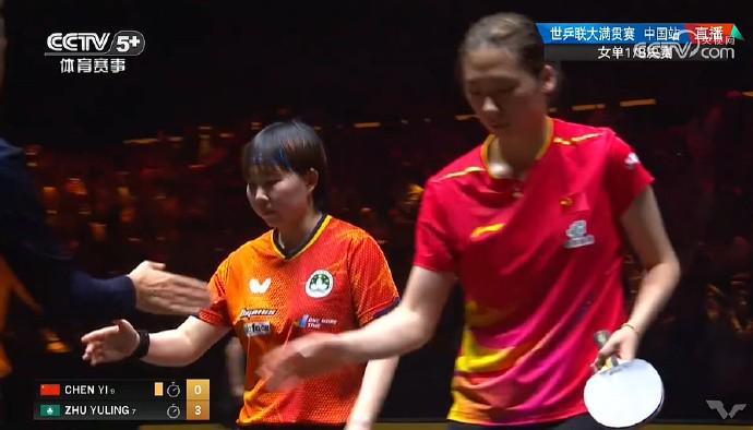另一场女单1/8决赛中,陈熠与前世界冠军朱雨玲展开对决。经过三局较量,陈熠以0-3(4-11、9-11、7-11)的比分负于朱雨玲,同样无缘八强。朱雨玲在赢得本场比赛后,将在下一轮比赛中对阵国乒选手陈幸同。