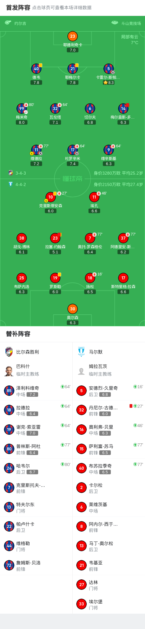 本场比赛,比尔森胜利全场控球率达58%,射门次数14次其中7次射正,效率显著高于马尔默的6次射门仅1次射正。马尔默则因红牌减员导致战术体系崩溃,最终未能组织有效反击。