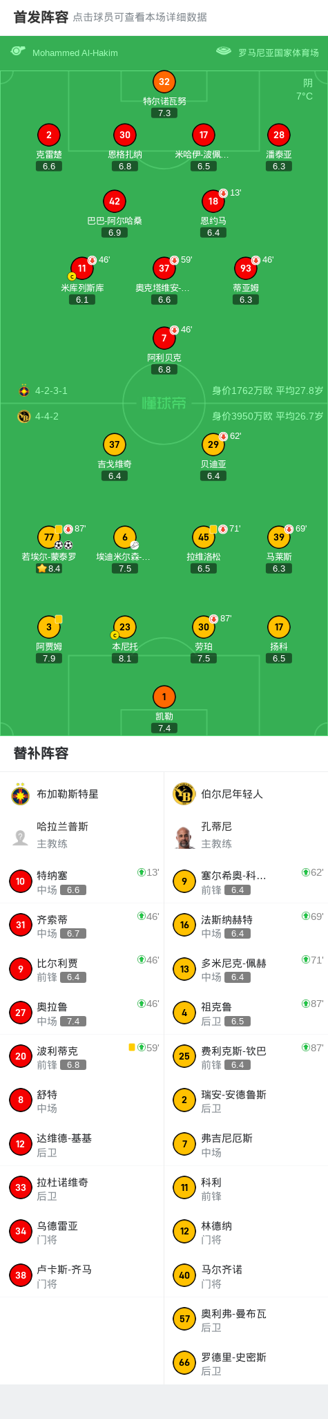 本场比赛,伯尔尼年轻人排出4-3-3阵型,若埃尔-蒙泰罗担任单箭头,埃迪米尔森-费尔南德斯坐镇中场。布加勒斯特星则以4-4-2应对,但中前场衔接不畅导致进攻效率低下。