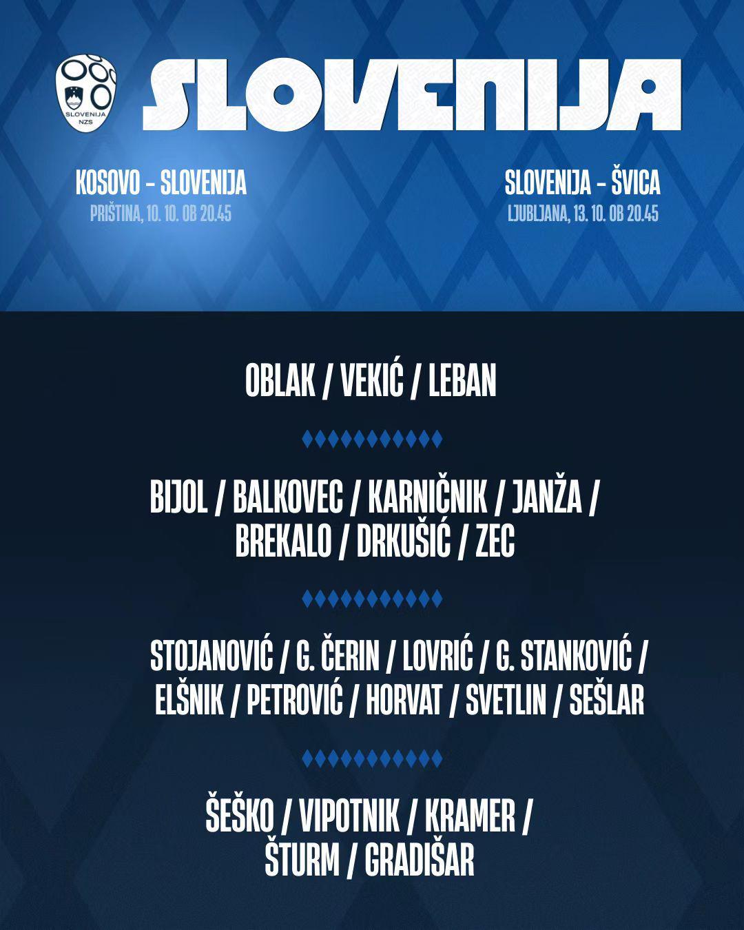斯洛文尼亚队新一期大名单详情