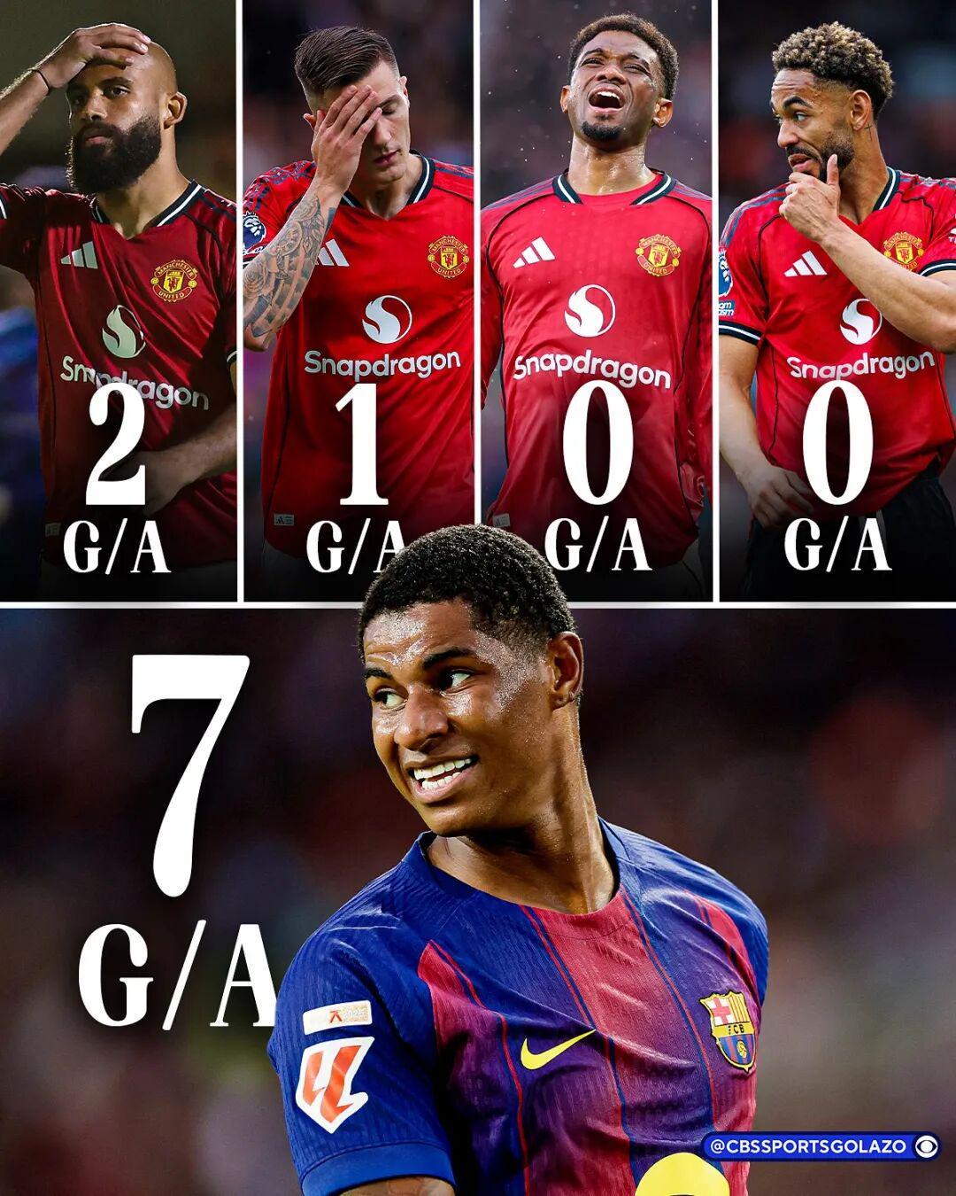 当曼联因无欧战可踢而让球迷周中略显乏味时,霍伊伦、加纳乔、格林伍德等红魔旧将的动态成了球迷关注的焦点。而其中最引人注目的,无疑是拉什福德——这位27岁的青训瑰宝在巴塞罗那找到了职业生涯的新高峰。自9月国际比赛日结束后,他的表现堪称世界级,近6场比赛独造7球(2球5助攻),成为红蓝军团进攻端的核心力量。