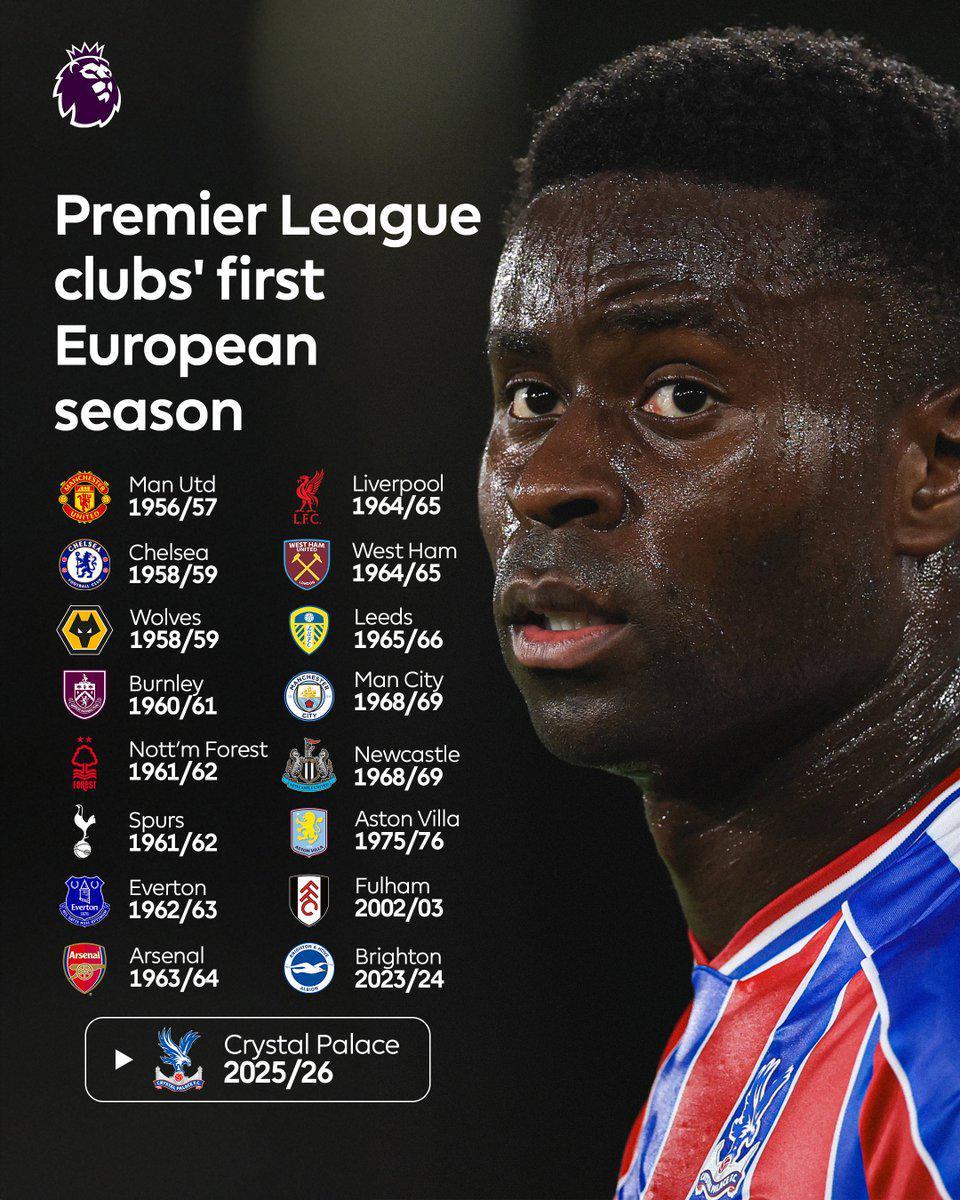 根据英超官方统计数据,自1956年曼联首次亮相欧冠以来,英超球队在欧洲赛场持续书写辉煌。水晶宫此次通过英超排名获得欧协联参赛权,填补了英超欧战版图的最后一块拼图。截至目前,已有16支英超球队先后完成欧战首秀,具体名单及赛季如下: