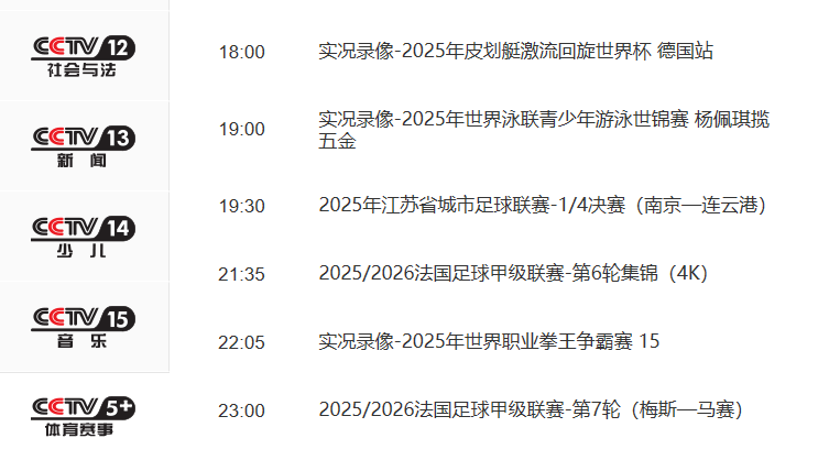 值得一提的是,在国庆节期间,10月4日当天几乎同一时间段,2025赛季中超还将进行3场补赛,包括19:00梅州客家对阵青岛海牛(第24轮补赛)、19:35大连英博迎战青岛西海岸(第23轮补赛)以及19:35山东泰山对决云南玉昆(第26轮补赛)。然而,这些比赛均未获得央视电视平台的直播安排,相比之下,苏超的待遇显得尤为突出。