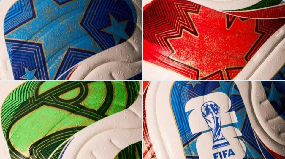 值得一提的是,这款足球的拼接方式也颇具创新。它只由四块拼接而成,是历届世界杯足球比赛中拼板数量最少的一次。每一块拼板都代表着一个主办国家,中间再以三角形形式汇聚,巧妙地展现了三国共同主办世界杯的理念。