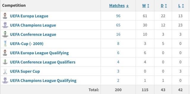 而这场胜利对于维拉主帅埃梅里来说,更是意义非凡。这是他执教生涯中的第200场欧战比赛,而在这200场比赛中,他取得了惊人的115场胜利,并四次捧起欧联杯冠军奖杯,堪称欧战赛场上的传奇教头。