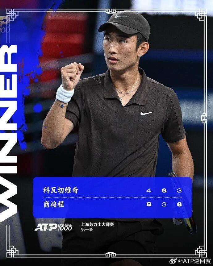 上海劳力士大师赛:商竣程2比1击败科瓦切维奇,连续两年闯过首轮