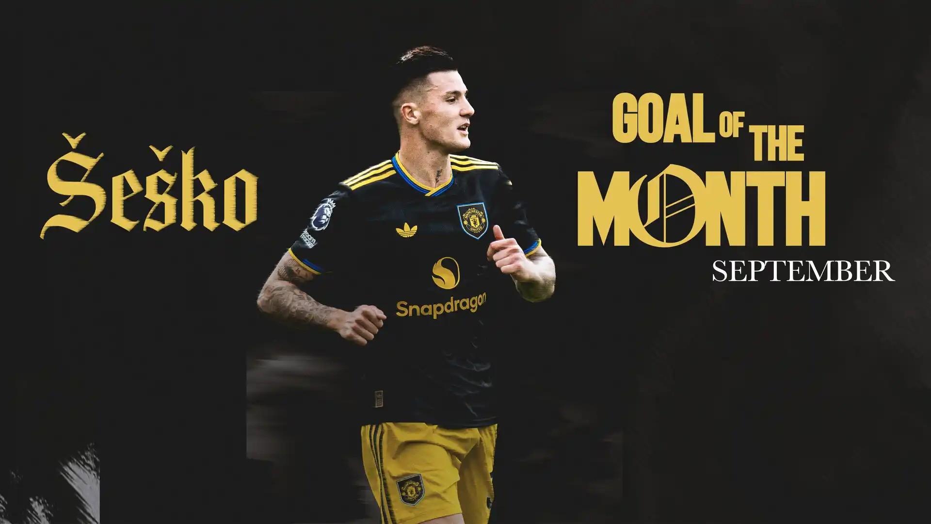 官方最新消息,谢什科在曼联的红魔生涯首球成功当选为球队9月最佳进球。