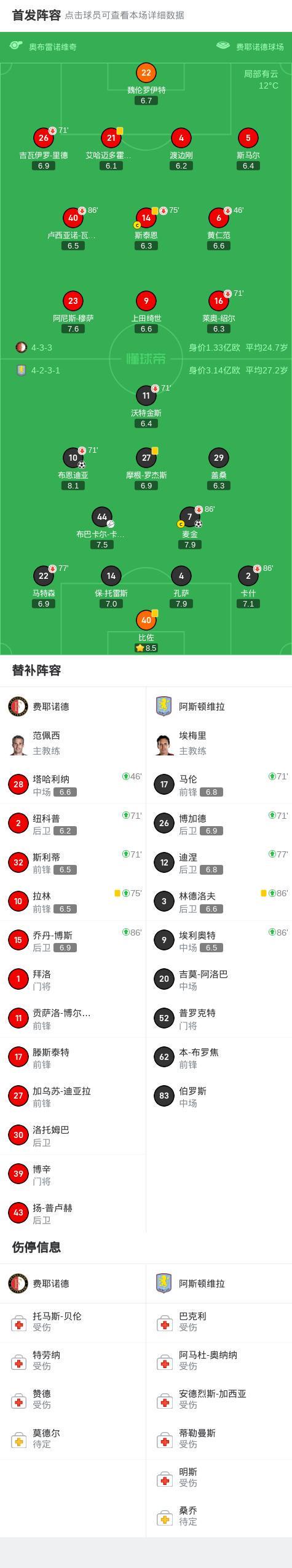 费耶诺德在主场也展现出了一定的进攻能力。第32分钟,他们获得一次角球机会,但后点的头球攻门未能命中目标,错失了先声夺人的机会。