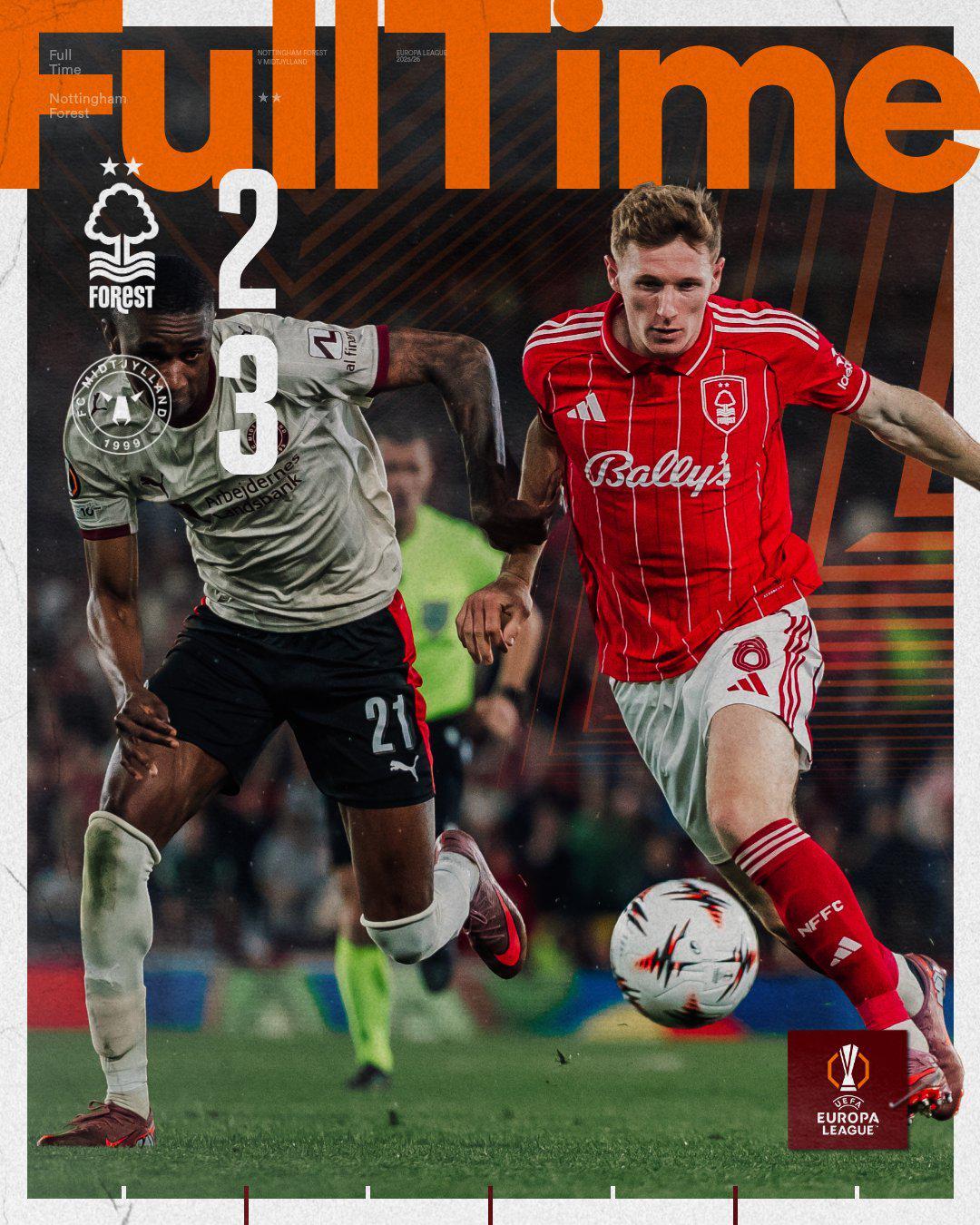 雷速体育10月3日讯 在今日凌晨结束的欧联联赛阶段第2轮焦点战中,英超球队诺丁汉森林坐镇主场却以2-3的比分意外负于丹麦劲旅中日德兰,遭遇各项赛事连续8场不胜的尴尬纪录。