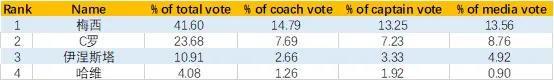 2017年C罗延续神奇表现,欧冠12球助皇马实现卫冕,个人连续五年荣膺欧冠最佳射手。西甲赛场他以25球并列射手榜首,世俱杯金靴更是锦上添花。最终以946分的高分获奖,领先第二名梅西276分,创下金球奖历史最大分差。