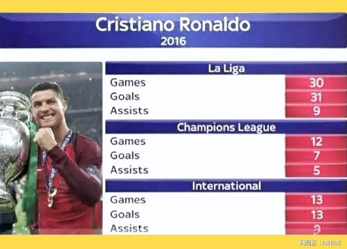 2016年堪称C罗的'双冠年',他不仅以16球助皇马夺得欧冠,更在欧洲杯决赛中头槌制胜。全年55场51球17助攻的数据,配合葡萄牙历史首座大赛冠军,使其成为当之无愧的世界第一。特别在欧冠淘汰赛阶段,C罗连续两场帽子戏法震惊足坛。