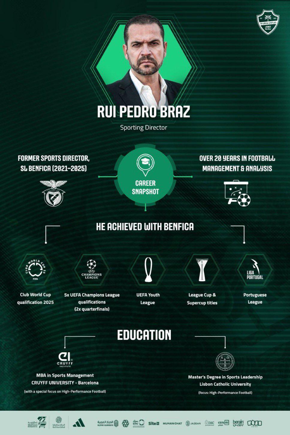 北京时间10月3日凌晨,沙特职业联赛劲旅吉达国民通过官方渠道宣布,葡萄牙籍足球管理专家鲁伊·佩德罗·布拉兹(Rui Pedro Braz)正式出任俱乐部新任体育总监。据知名足球记者本·雅各布斯披露,布拉兹将于下周初抵达沙特首都利雅得,全面开启在吉达国民的管理工作。