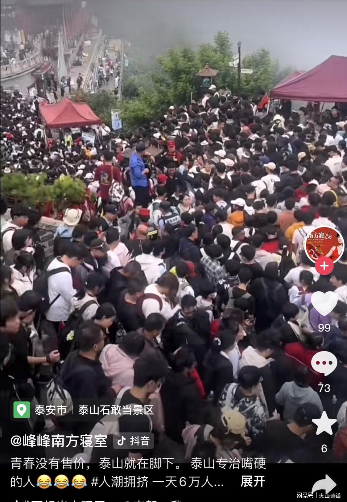 然而,这场盛大的登山活动也引发了网友热议。有游客在社交平台发帖称:“今天刚从泰山下来,被挤到怀疑人生!”另一位42岁的游客则感慨:“花800元挤在泰山人潮里,才明白有些‘坚持’不过是和自己较劲的愚蠢。”
