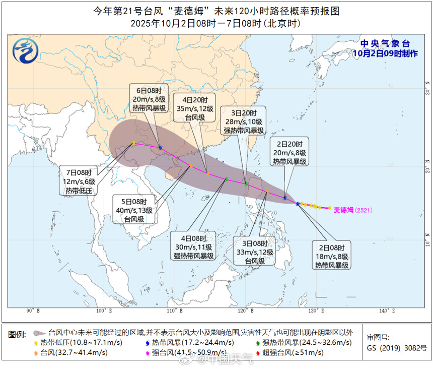 此外,据中央气象台消息,今年第21号台风“麦德姆”已经生成,直奔我国华南沿海。昨天8时,其中心位于菲律宾马尼拉偏东方约680公里的洋面上,强度为热带风暴级(8级,18米/秒)。预计,“麦德姆”将向西偏北方向移动,强度逐渐增强,3日白天将在菲律宾吕宋岛东部沿海登陆,以后穿过菲律宾吕宋岛北部,3日夜间到4日凌晨将移入南海东部海面,以后逐渐向广东西部到海南岛东部一带沿海靠近。