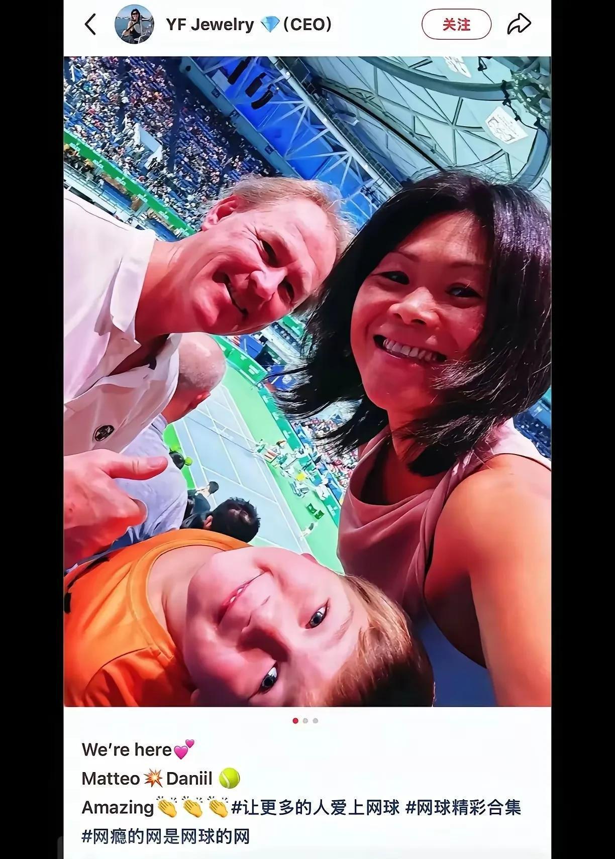 随着事件的发酵,谢某的个人账号被网友扒出,她的身份也逐渐曝光。原来,谢某今年已经46岁,嫁给了一个外国老公,是一家公司的高管,两人还育有一个混血儿子。此前,谢某一家三口就曾一起去看网球比赛,并分享了全家福。