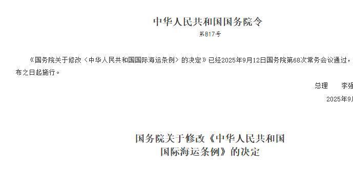 就在美国为政策细节扯皮之际,中国已率先出手。9月29日,国务院公布《国际海运条例》修改决定,新增第三十九条反制条款,明确列出四项措施:征收特别费用、限制进入中国港口、禁止提供海运信息、限制相关业务。这些措施几乎覆盖了美国在华海运利益的所有关键环节。