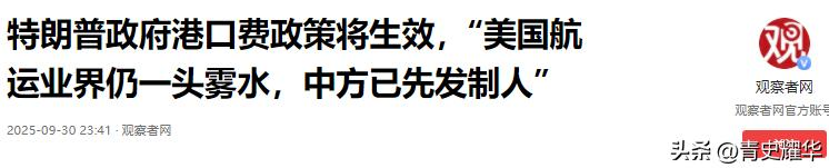 观察者网——特朗普政府港口费政策将生效,“美国航运业界仍一头雾水,中方已先发制人”