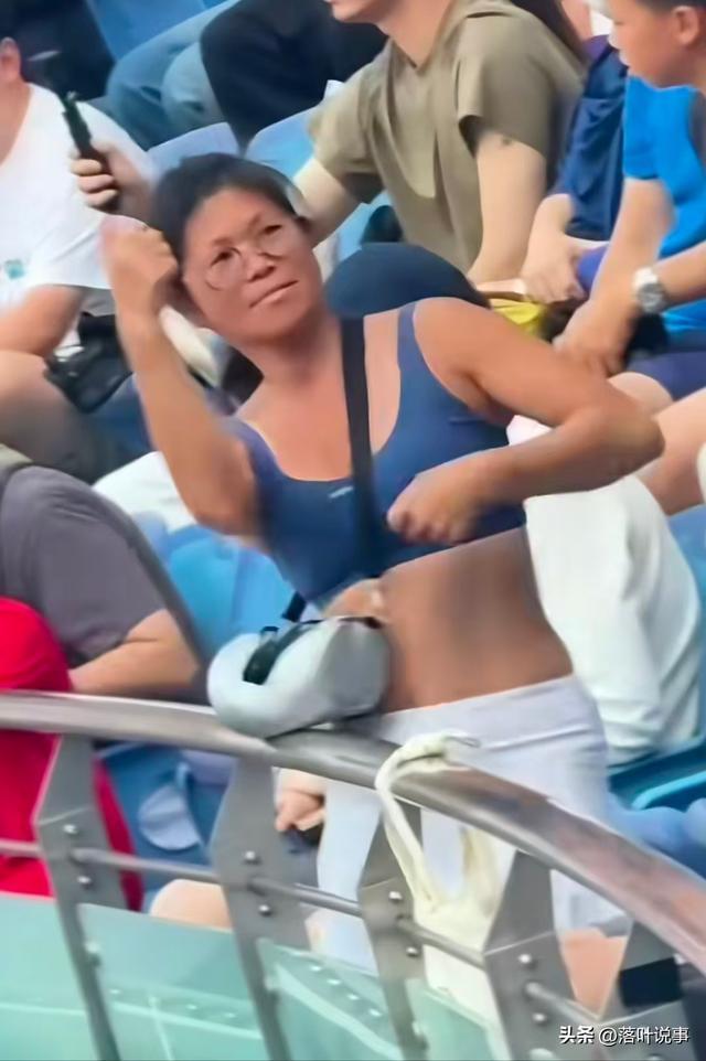 2025年10月1日上海旗忠网球中心,一女子不但在观众席上大声喧哗手舞足蹈,甚至不停拿着证件多次挑衅坐在一旁的帽子叔叔,仿佛任何人都奈何不了她!