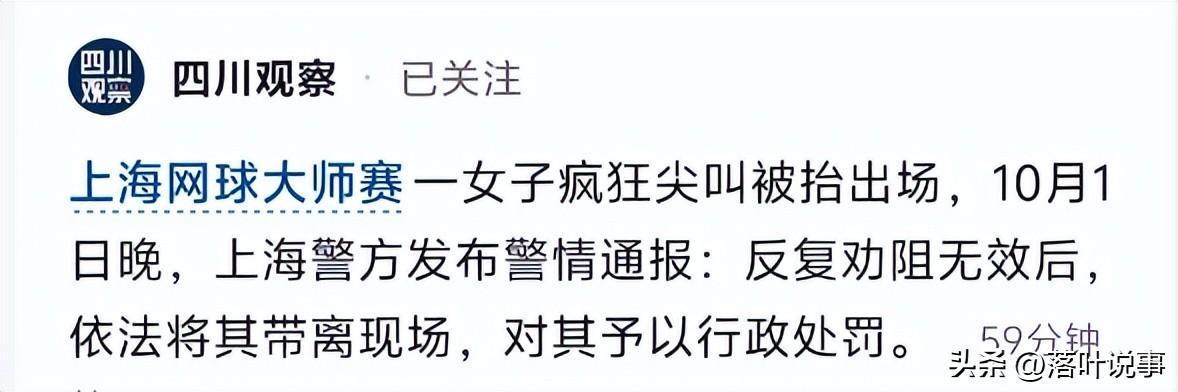 国庆假期第一天,上海网球大师赛,比赛正在进行中而一名女子却凭着一己之力扰乱了比赛秩序。